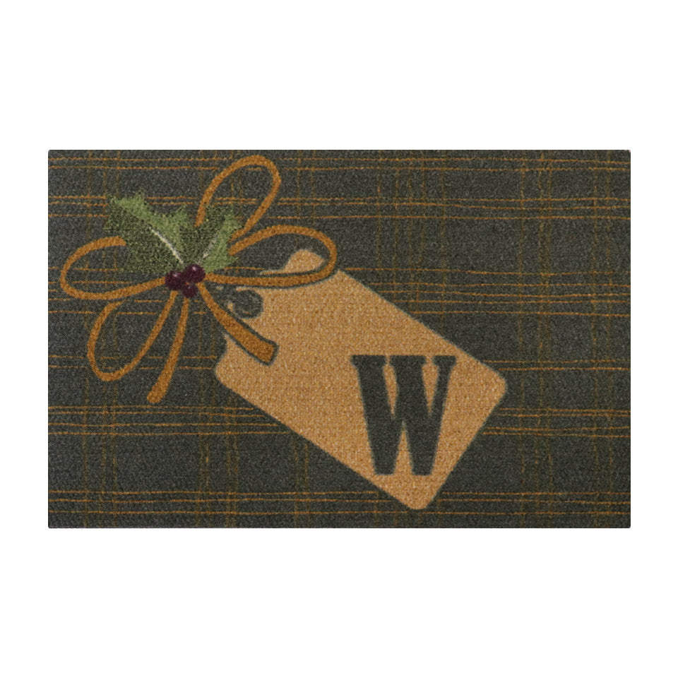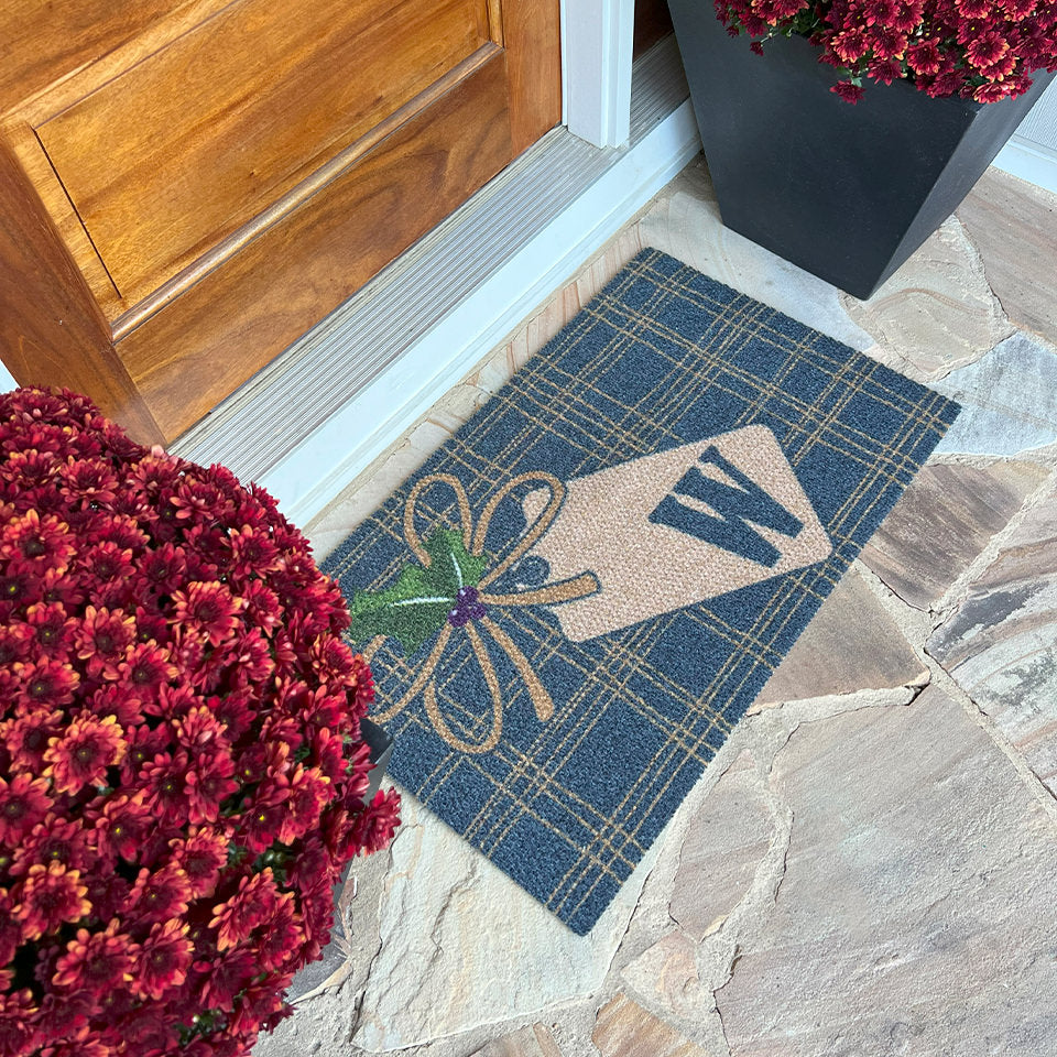 - Bring the cheer of the holidays to your doorstep with the Neighburly Holiday Monogrammed Package Doormat. A festive plaid design in deep blue and brown adds charm while the classy monogram ensures a warm welcome for your guests. No chilly receptions here!