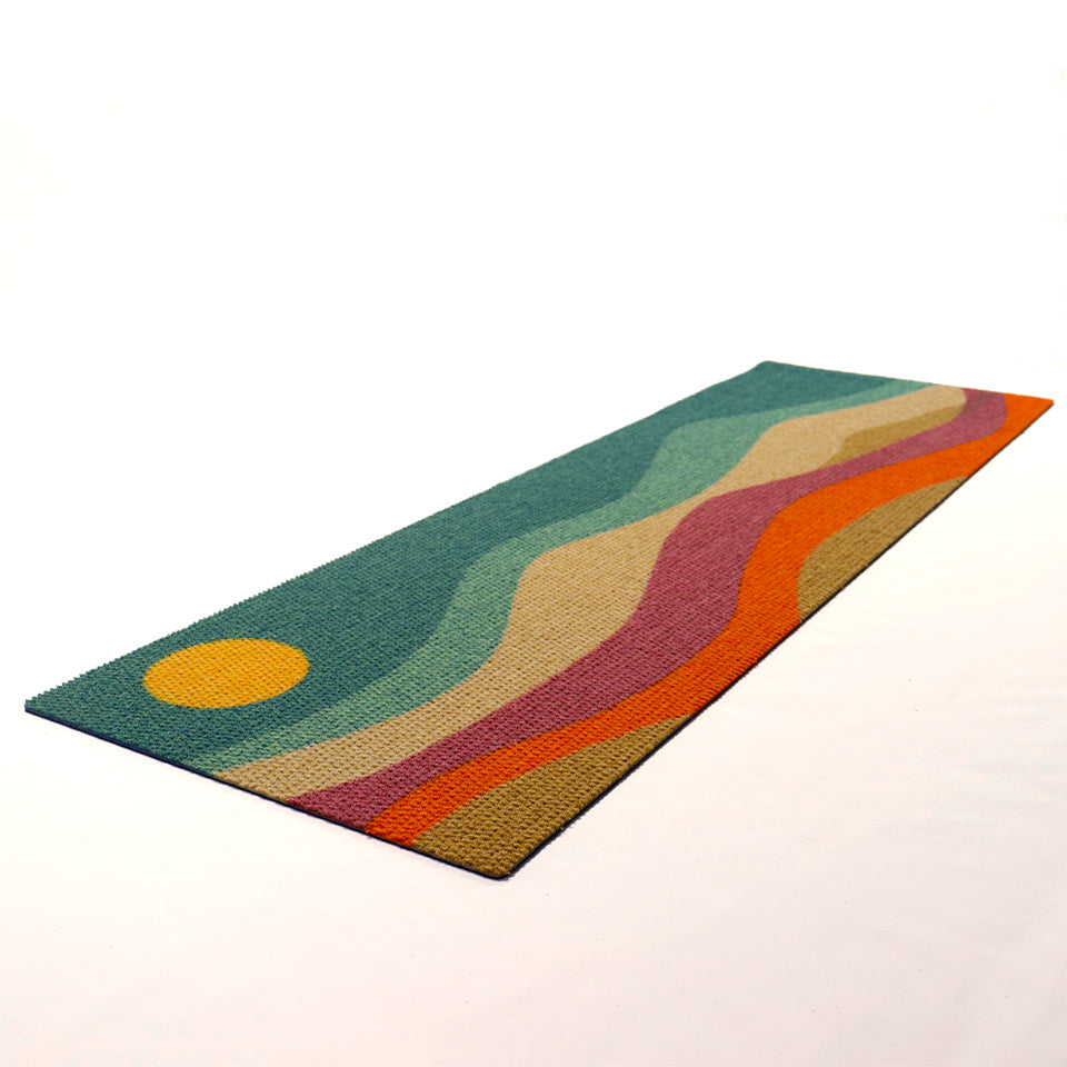 • Beautiful doormat featuring landscape design with mix of bold blues, reds, and oranges combined with soothing yellow and natural browns. This mat will be a showstopper for your guests when they come to the front door!