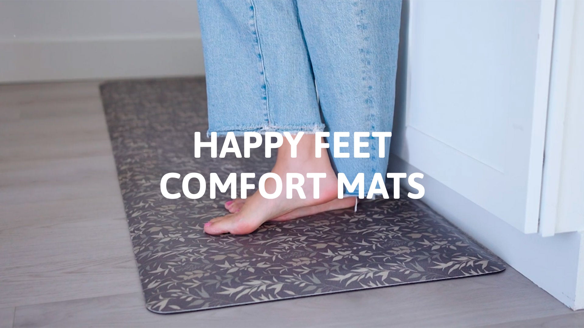 Happy Feet anti-fatigue mats are the perfect cushioned kitchen mat, an ideal waterproof bathroom vanity mat, an ergonomic standing desk mat, or soft laundry room mat. Literally anywhere you stand, Happy Feet mats are a great standing mat solution.